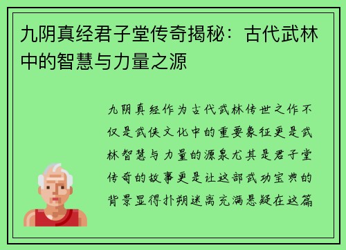 九阴真经君子堂传奇揭秘:古代武林中的智慧与力量之源